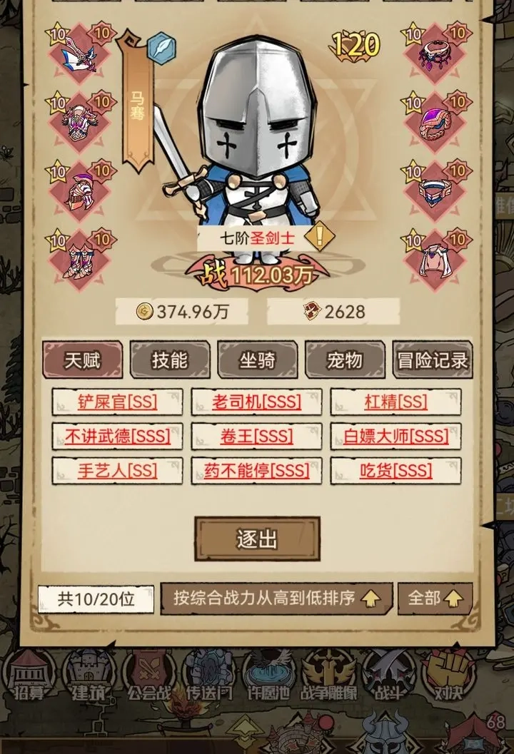 在英雄还没拿到满级的骑宠装备前,其实不用急着升级那些装备,毕竟之后都是要换掉的;前期不建议在城镇里学习技能,主要是因为“进击”选项是随机触发的,要是多了两个技能学习的选项,反而会拉低升级项出现的概率,这样就太浪费时间了。