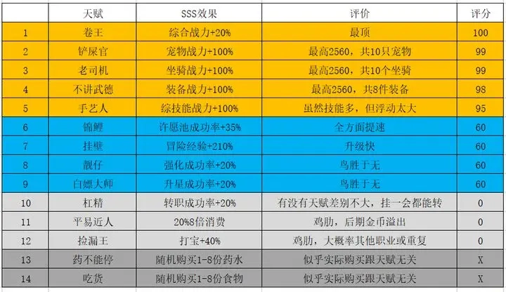 最优的天赋组合是卷王3s、吃货3s和药不能停3S,绝对不能带有平亿近人这个天赋,其他的天赋可以随意搭配。建议只要卷王达到3S,吃货和药不能停都在2s以上就足够了,毕竟要刷出全部满星的天赋会让所需时间呈指数级增长。平亿近人会把英雄的钱变成你的钱,我们要坚决对这种类似资本家的行为说不。