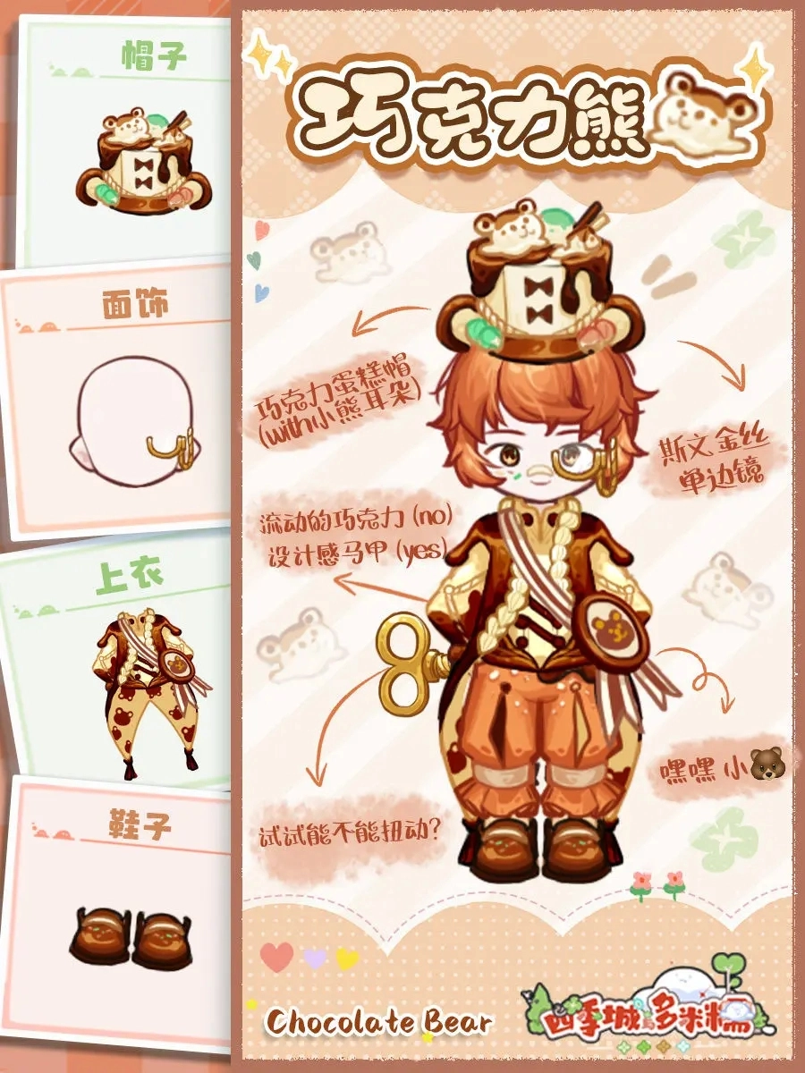 瞧瞧这巧克力小熊的耳朵、蛋糕做的礼帽,还有那如同流淌着的巧克力般的马甲,是不是已经闻到一股浓郁醇厚的香气扑面而来啦~