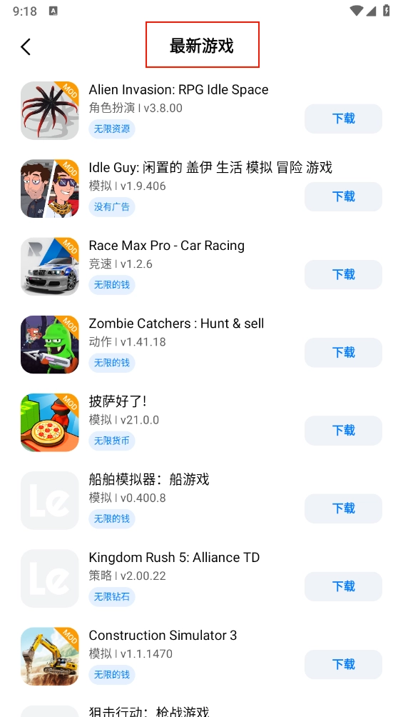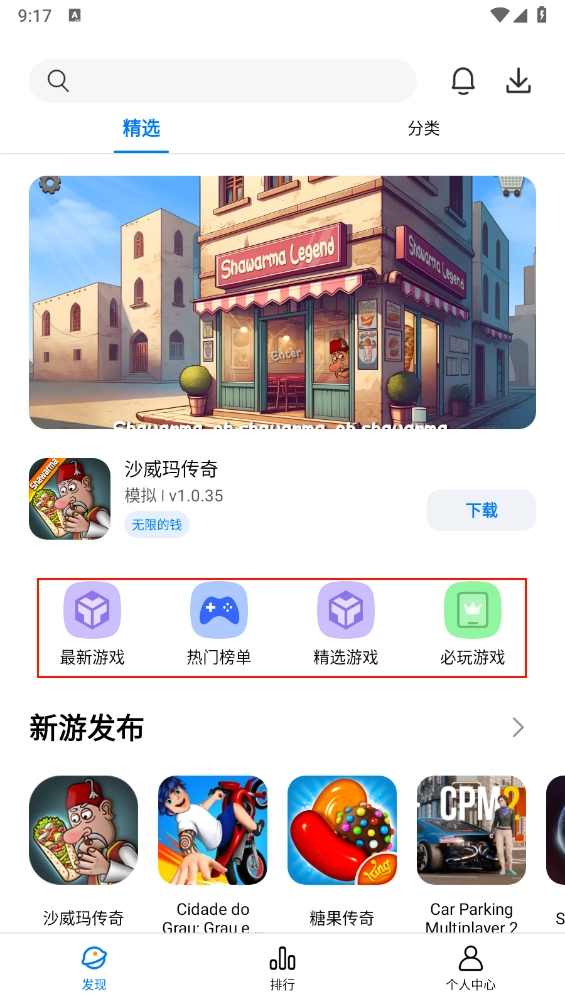在“发现”板块中,包含了最新游戏、热门榜单以及精选游戏等内容。
