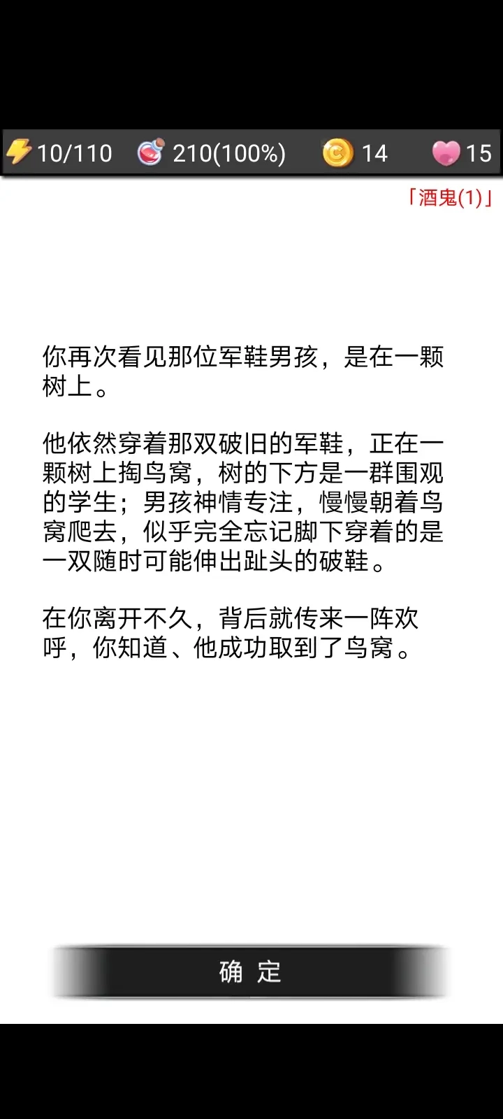 在初次碰到军鞋男孩前,你的背包里是否装有木器,会触发两种不同的场景,这两个场景各自又对应两种结局,总共算下来就是四个结局。