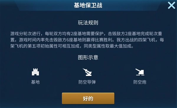 在基地守卫战里,同一阵营的4位玩家,他们出战飞机的第5项属性会彼此叠加增益。不过要是叠加的属性类型一样,那就只保留数值最大的那个。简单来说,要是这4个人选择的出战飞机,其第5属性都不一样,那你的飞机在夺旗战里最多能获得8项属性加成,这对飞机的战斗力提升无疑是相当大的。