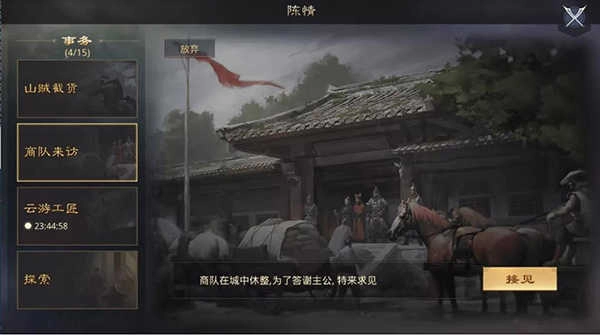 在每日的陈情任务里,玩家不仅能邂逅各式各样的工匠,借助他们的力量来提升自身宝物的品质,还能体验到探索、营救商队等全新类型的陈情。完成这些陈情时,玩家既可能获取到培养宝物需要的材料,也有机会触发新的陈情事件。