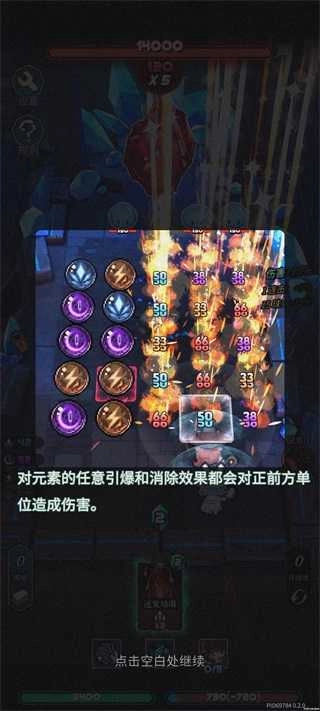 元素的任意引爆或消除效果,都会对正前方的单位造成伤害。