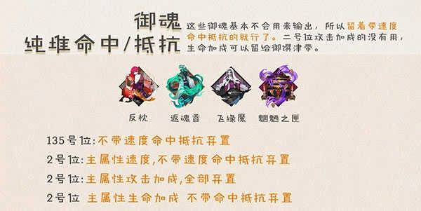 这些御魂主要不是用来打输出的,所以保留带速度、命中、抵抗属性的就可以了。二号位带攻击加成的没什么用,生命加成的可以留给御馔津用。