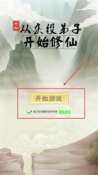 在进入游戏之前,需要先勾选【我已经详细阅读并同意隐私协议】这一选项,接着点击【开始游戏】按钮,就能踏入修仙世界,开启这段独特的旅程了。