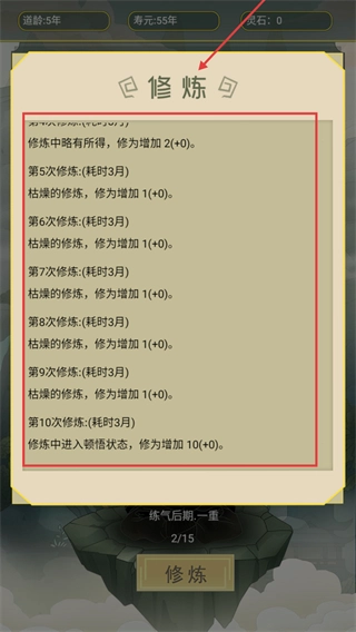 每次修炼需要花费3个月时间,当进行到第10次修炼时,有可能进入顿悟状态,此时修为会增加10点,需要通过多次修炼积累才能突破境界。