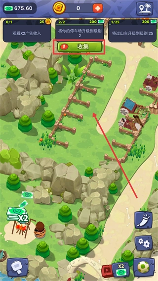 点击红色框里的【收集】按钮,就能收取对应区域的收益,让游戏资源积累的流程往前推进。