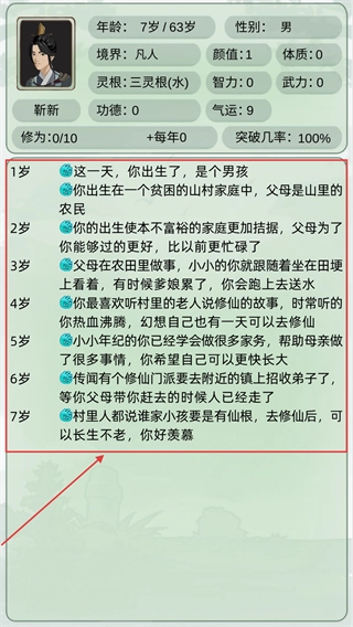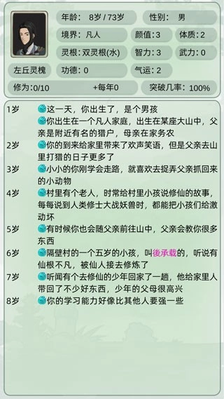 点击【开始游戏】按钮即可踏入修仙世界,开启你的轮回修仙之旅,后续还能自由配置属性,体验多种多样的人生经历。