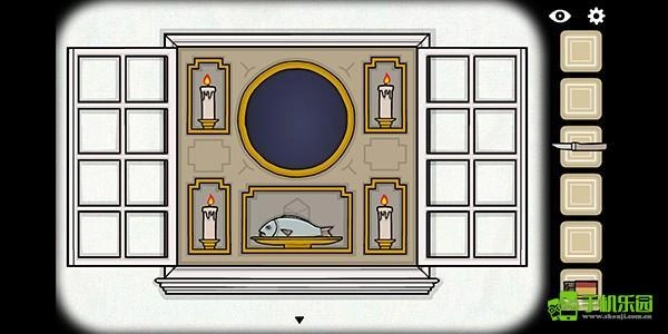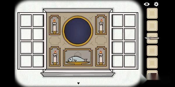 把我们之前找到的三支蜡烛摆上去,用火柴点燃,再在中间放上鱼。