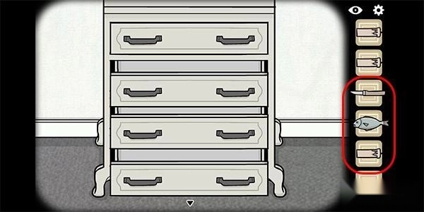 拉开抽屉,第二格放着一把小刀,第三格有一条鱼,第四格则是第三支蜡烛。