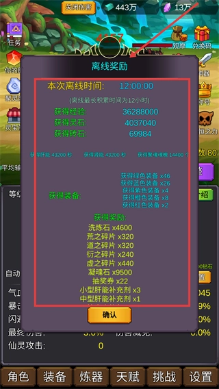 登录游戏后,先领取离线奖励,可获得【经验】【灵石】【砖石】等资源,助力前期快速提升等级。