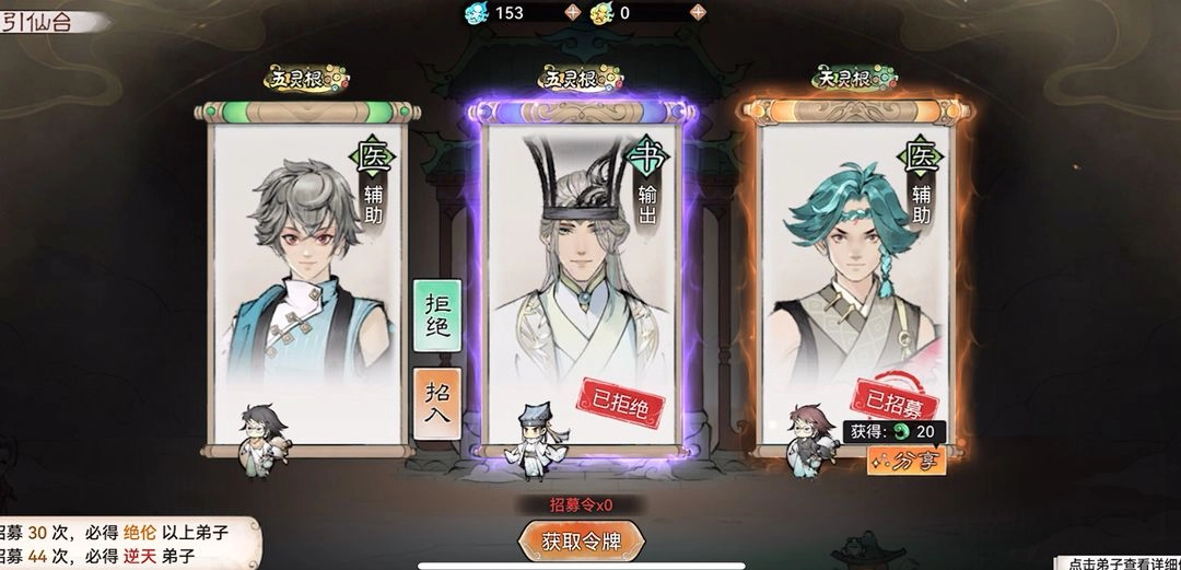 拜山弟子:偶尔会有前来拜山的弟子,但想抽到高品质的弟子,概率是比较低的。