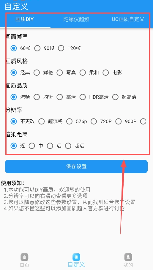 第三步是学习与解惑,首页设有清晰的“使用教程”入口,若对DIY画质或陀螺仪超频存在疑问,按照教程步骤操作即可。