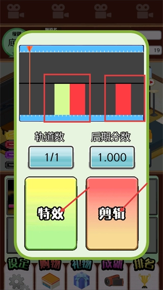 进入后期制作界面后,界面会显示【轨道数-1/1】以及【后期分数-1.000】的信息,你可以通过点击【特效】和【剪辑】按钮来对视频内容进行优化。