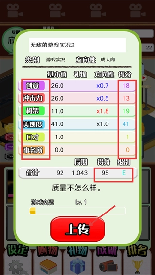 作品《无敌的游戏实况2》-类别【游戏实况】,综合得分【95-级别-E】,确认质量无误后点击【上传】按钮发布内容。