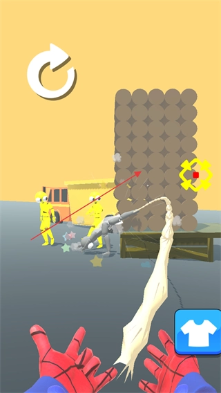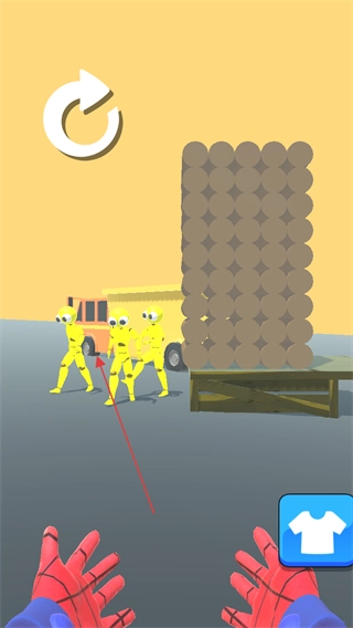 1、观察黄色木偶人及周围物体位置,准备发射攻击。