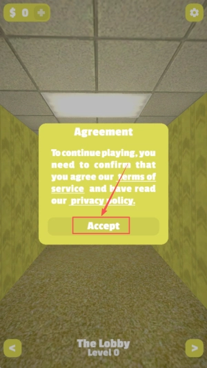 1、接受协议:点击“Accept”按钮以同意服务条款与隐私政策,进而继续进行游戏。