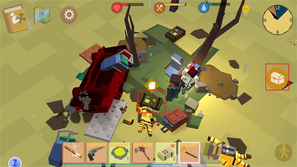 4、当玩家移动到可收取道具的附近时,可点击游戏右侧的手掌按钮来收取道具。