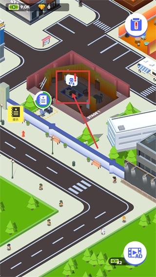 2、在场景里找到带有提示标识的【布景区域】,可以利用左侧的【提示】功能,快速找到需要进行操作的升级区域。