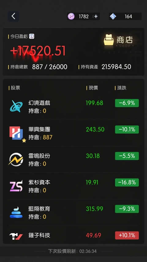 3、每周的股票币都要全部买满,股票市场的大奖福利相当不错,要是对自己的运气有信心,不妨尝试投资看看。