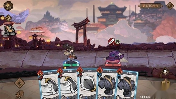 2、战斗中需滑动选取武学卡牌,施展招式攻击对手。