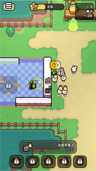 2、店铺成长体系:从小型街头摊位逐步升级为连锁果汁门店,通过解锁自动榨汁设备与智能收银系统来提高运营效率。