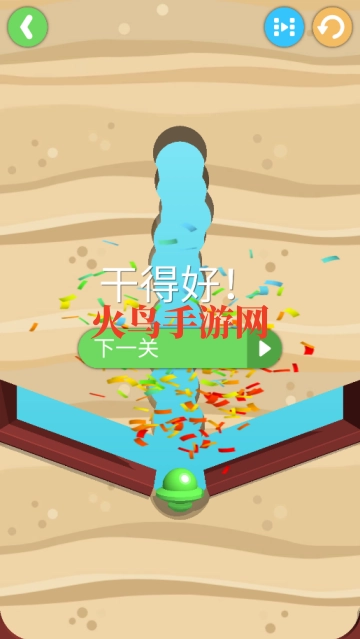 在这里,你需要用手指为小球挖出一条通路,引导它进入杯中,就能顺利通关。