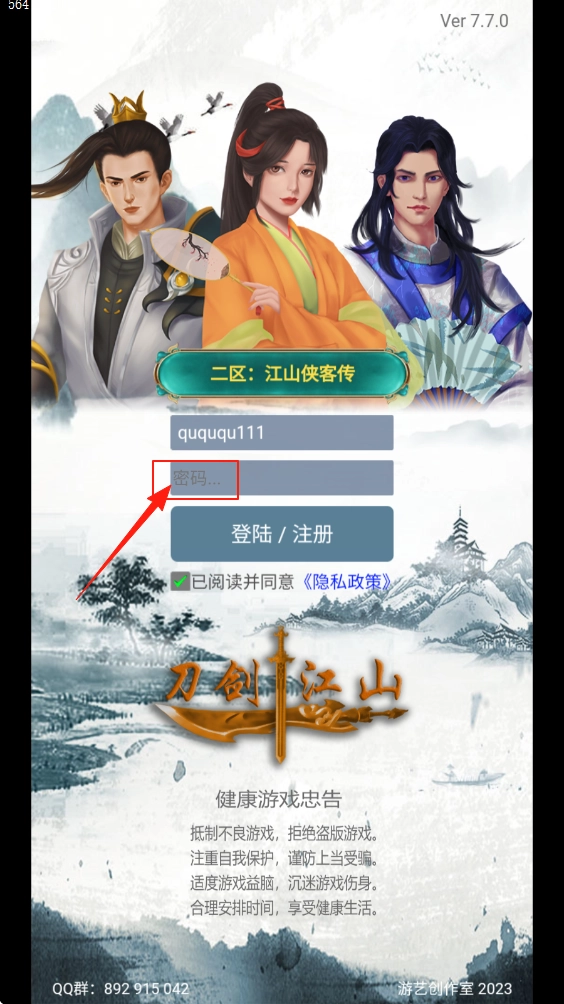 1、在登录界面填写账号和密码,勾选同意相关协议后,点击登录按钮即可进入游戏世界。