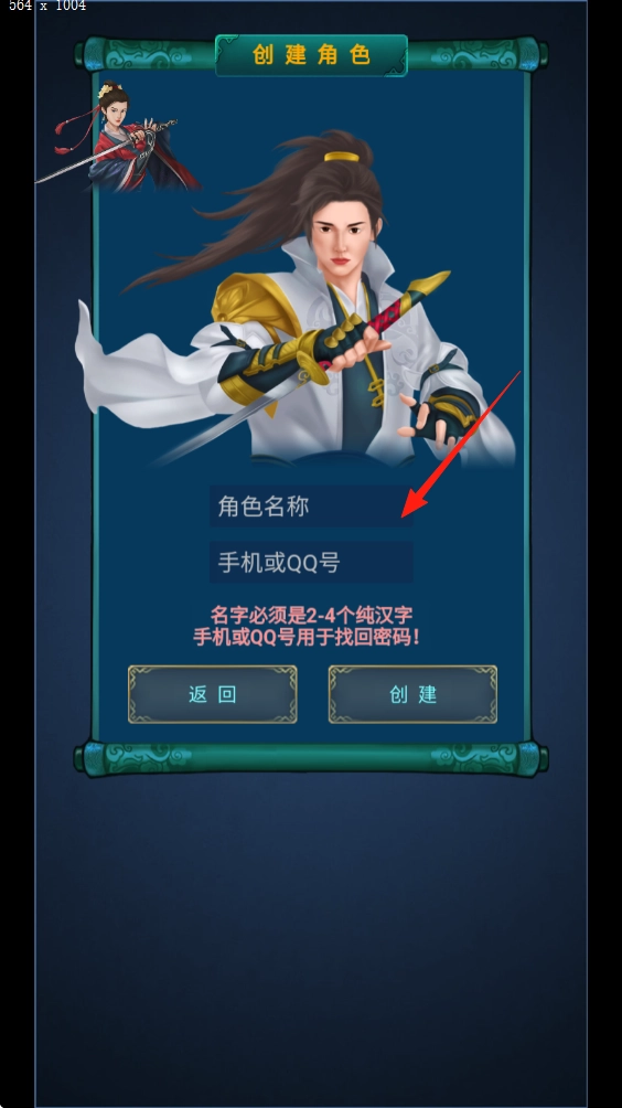3、登录成功后进入角色创建页面,填写2到4个汉字的角色名以及联系方式,点击创建按钮即可开启冒险之旅。
