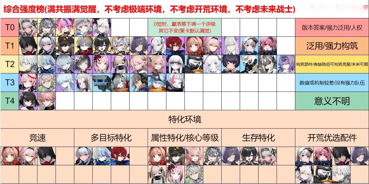 T1强度榜:那由他、夏洛蒂、卡洛琳、卡塔斯、约书亚、苍叶、甘雅、菲妮娅、冯·里奈、塞西尔、静流、卡莲。
