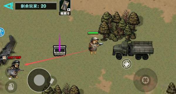 1、进入战场后,主动搜寻场景里的各类资源,靠近物资点击就能拾取。