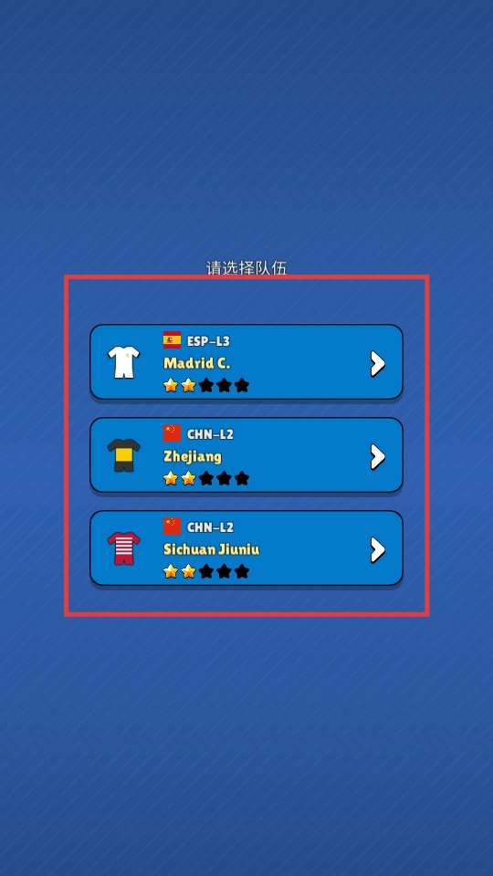 1、从三支队伍里选择心仪的队伍,开始游戏。