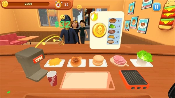 以第一人称视角真实还原烹饪时的手感,数百种食材可供随心创意搭配,满足顾客对菜品的需求,在规定时间内完成制作即可获得奖励,通过不断升级工具与厨具,提升美食制作效率,解锁更多精彩内容。