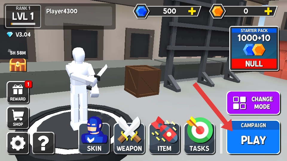 1、在游戏主界面,点击【PLAY】按钮,进入战役模式的战斗场景。