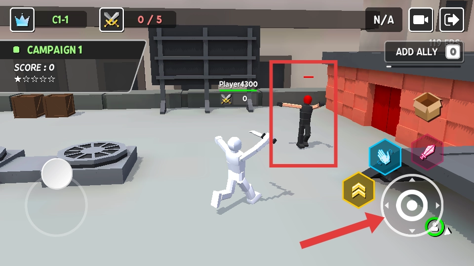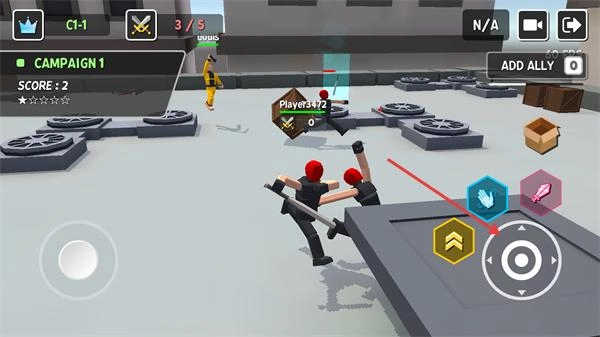 2、战斗中操控角色靠近敌人,用【SWING】按钮发动攻击,击败敌人积累分数与击杀数。