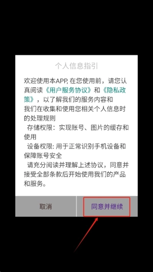 1.确认条款:启动游戏后,阅读并同意个人信息指引,点击“同意并继续”开始游戏。