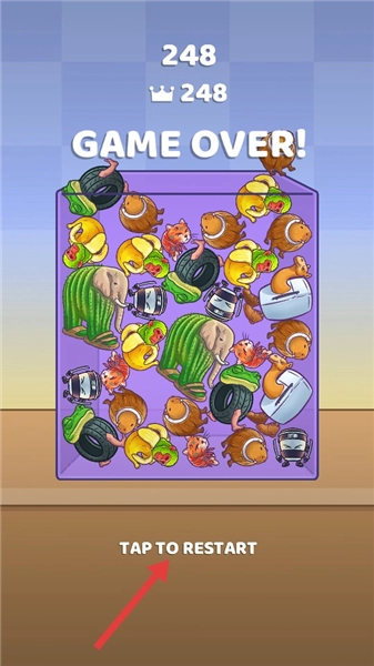4、游戏结束后,点击【TAP-TO-RESTART】,重新开始游戏,争取获得更高分数。