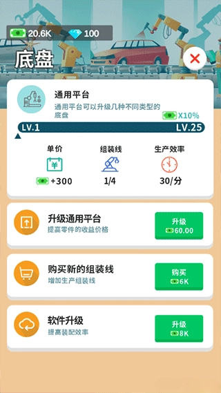 在游戏中,你将从零开始,规划并运营属于自己的汽车生产基地。通过制造汽车零件或组装整车来积累财富。随着业务发展,你可以不断升级生产设备,优化工艺流程,逐步实现自动化生产,让你的工厂规模越来越大。
