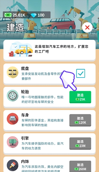 建造新设施可以解锁更多的汽车零件。