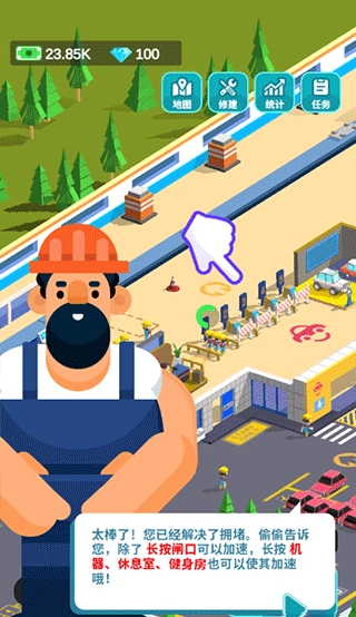 长按机器、休息室和健身房也能加速它们的功能。