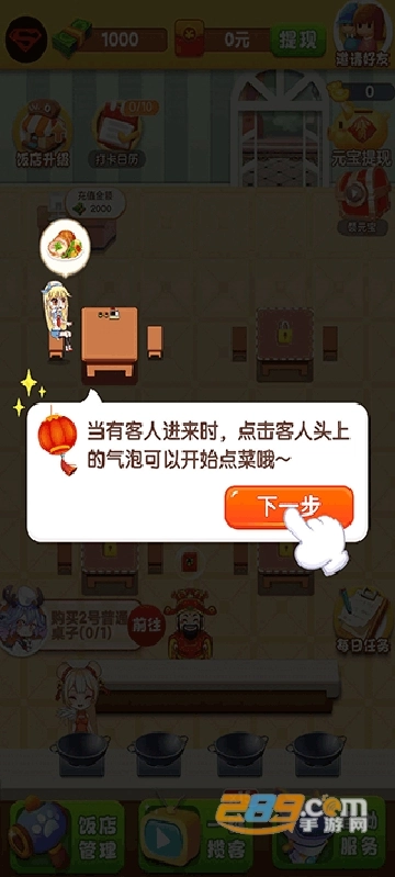 新手指引完成后,你就可以尝试自己经营饭店来赚钱了。