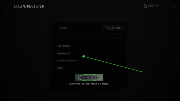 从本站进入游戏后,在当前界面找到并点击“register”按钮完成注册操作
