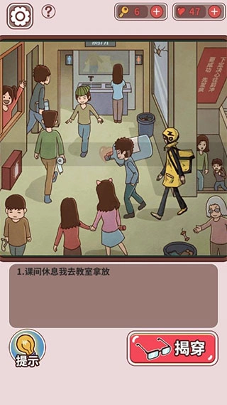 注意:出门巡视揭穿对方的谎言后,还得通过一个小游戏才能抓住这个学生,只要快速点击按钮就行。