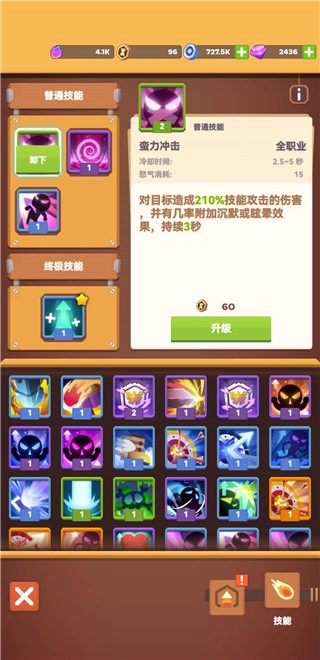 天赋 天赋分为基础天赋和职业天赋。 基础天赋点到第3层可以开启转职系统,目前可选职业为法师和骑士,可以随时进行职业转换。 开局建议首选法师,直到开启终极技能后转为骑士。 基础天赋以资源为主,点满除增加经验值和升星石的其他资源型天赋,职业天赋也是以生命值、普攻、普防、闪避、暴击为重心,暂时速度比技能攻击与技能防御用处大些,但不明显。 别忘了普通技能是可以升级的哟,最高等级10级。