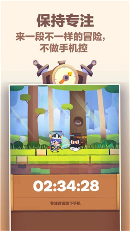 这款专注驱动的RPG游戏打破常规玩法,玩家通过设定专注时长积累“时间能量”,每一分钟的专注都能让角色获得成长——从强化勇者属性到打造装备、挑战怪物、推进剧情,所有核心玩法都与专注时长深度绑定。在这个独特的游戏世界里,放下手机的专注时光将转化为勇者的力量,助力你一步步成为最强战士,守护专注王国的和平。如果你想体验这种将专注力与游戏乐趣结合的全新模式,不妨来试试这款创新游戏。