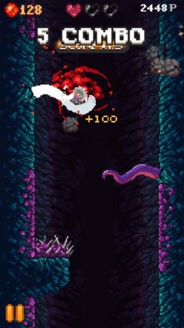 轻触屏幕的瞬间,角色会朝着对面的墙体腾跃,随后继续向下滑落。借助这一跳跃机制避开墙上的尖刺陷阱,消灭沿途的怪物,以此提升得分,解锁更多全新的场景。