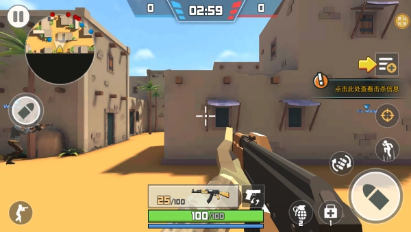 观察小地图,看到眼前敌人,快速完成射击取胜。
