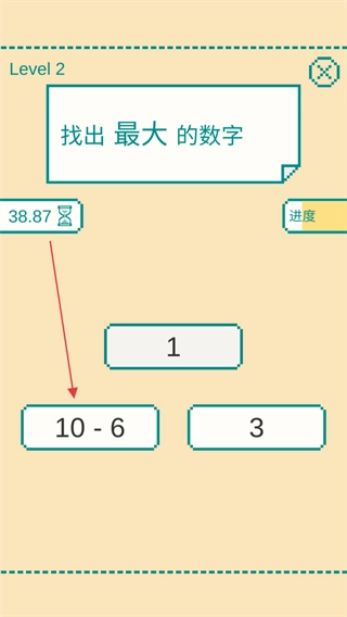 请时刻留意左上角的60秒倒计时,在规定时间内完成数字大小的判断,以此来推动关卡的进度。