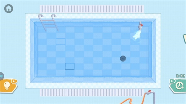 最后再将水塞放回原处,开水龙头将泳池放满即可过关